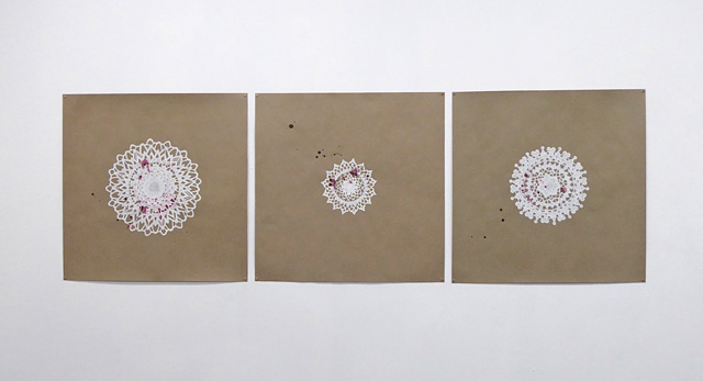 aus der Serie 'grandma's gifts Zeichnungen Pigmentstift und Beize auf Khepera-Papier 2015/2016 ca. 75 x 75 cm