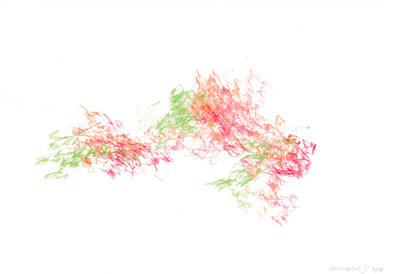 seismographie 3 Zeichnung, Stifte auf Papier 14,8 x 21 cm