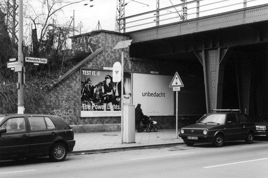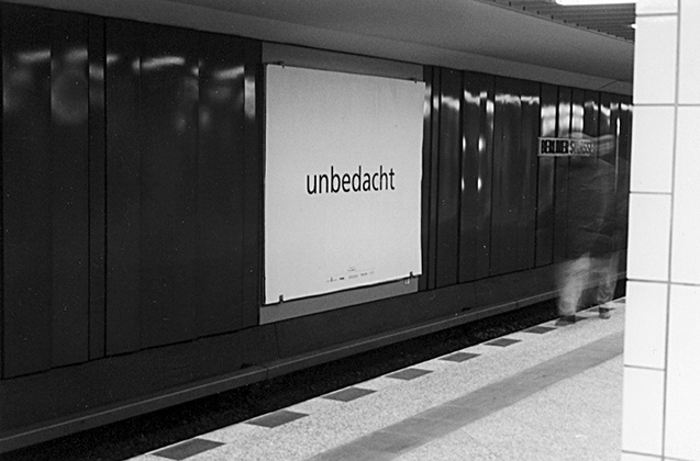 ‚bedacht hausen’ Großflächen–Plakataktion im Stadtraum Berlin 2001/2002 hier: U-Bahnhof Berliner Straße 2001