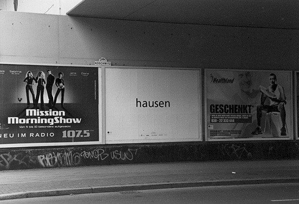 ‚bedacht hausen’ Großfläche –Plakataktion im Stadtraum Berlin 2001/2002 hier: Heinrich-Heine-Straße 2001