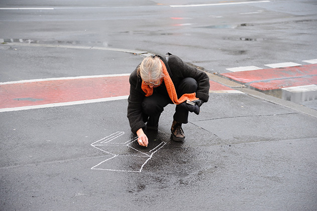 einhundert stühle für liu xiaobo - eine Zeichenaktion im öffentlichen Raum, Kreide auf Asphalt 2011