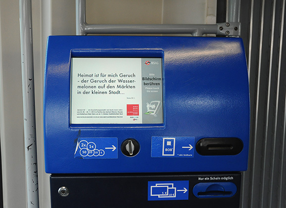 'heimat ist für mich geruch...' Installation von Zitaten für die Dauer derAusstellungen in den Ticketautomaten der