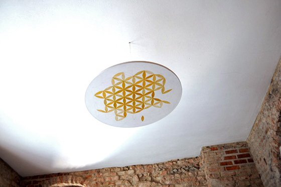 Ornamentzeichnung 2019 Farbstifte und Acryl auf Leinwand ⦰ 1m Im gotischen Gewölbe im hinteren Raum lassen