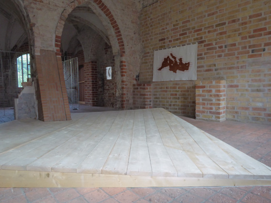 Rauminstallation mit Plattform ca. 4 x 4m, 'tuch' 1,70 x 1,10m, Zitat