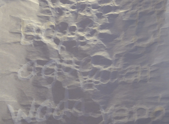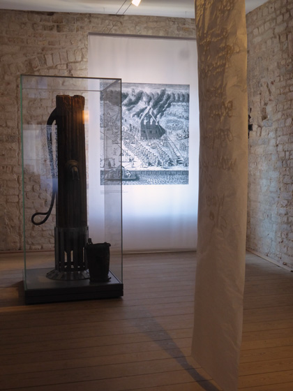 'wasser' 2019 Im Raum zur Geschichte der Spandauer Wasserversorgung installierte Zeichung mit dem Begriff