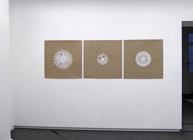 o.t aus der Serie 'grandma's gift' 2015–2018 Zeichnung Pigment-Stifte und Beize auf Kheperapapier Maße ca. 75 x 75 cm