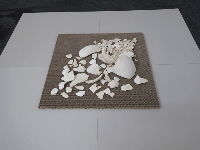 o.t. ( Scheitern I beim Versuch, dem Tod einen Ort zu geben) 2018 gebrannter Ton, Sockel aus Karton