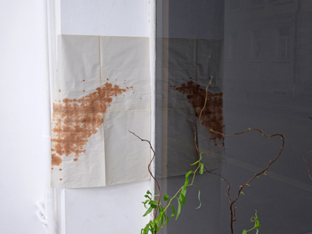 'spuren' 2018 Abdruck der Arbeit 'tuch' Beize auf Papier