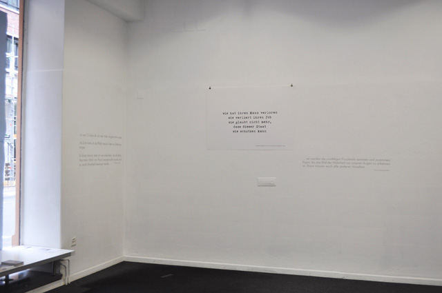 Raumsicht links mit Zitaten von Abdulkerim Simsek, Simone Boulgarides und Siebdruck aus 'Im Kontext NSU -…' 70 x 100 cm
