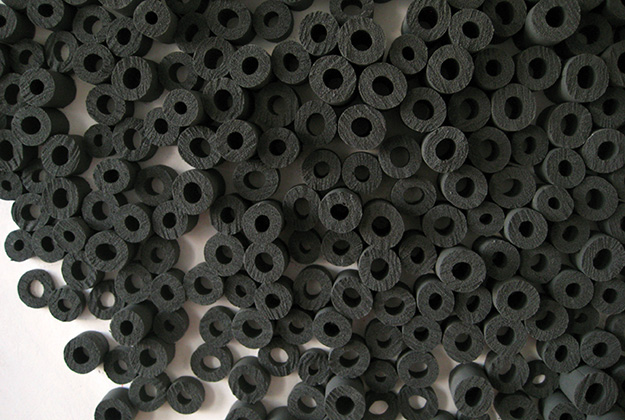 hier: großer Kreis Wandabrieb, Marmormehl, Sockel, Isolierrohre, Wanddurchbohrung