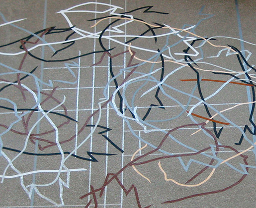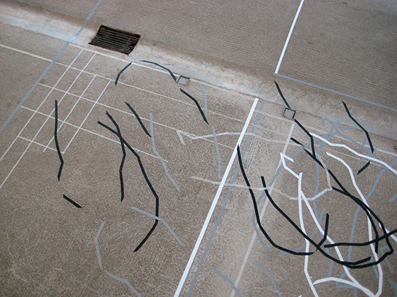 Raumzeichnung ca. 300 qm, farbige Klebebänder Detail