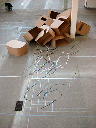 Berlin (Caravans) Raumzeichnung ca. 300 qm, farbige Klebebänder
